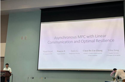 Recently, Yifan Song, an assistant professor at Tsinghua University, and his team proposed a novel unconditionally secure multiparty computation protocol in the asynchronous network setting, which for the first time achieves an amortized cost of linear communication in the number of parties and constant number of secret sharing per gate. In the same time, the team also gave the first protocol for secret sharing with linear communication complexity in the number of parties. When combining these two results together, the team obtained the first unconditionally secure multiparty computation in the asynchronous network setting with linear communication per gate. The achieved results are of great importance in the area of distributed computing and secure multiparty computation. The above two works are both published in CRYPTO 2024. The co-authors of the second result, Xiaoyu Ji and Junru Li, are both Ph.D. students at IIIS, Tsinghua University.