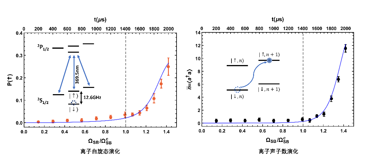 The quantum Rabi model (QRM) is widely recognized as a fundamental model for the light-matter interaction. The study about the QRM is in the spotlight in theoretical and experimental physics. In the trapped-ion systems, previous works on the simulation of the QRM have been performed in various regimes. Professor Duan’s group successfully observed a QPT from the normal phase to the phonon superradiance phase associated with the QRM realized in a single trapped ion system. They measured the spin-up state population and the average phonon number of the ion as two order parameters and observe clear evidence of the phase transition via adiabatic tuning of the coupling between the ion and its spatial motion. An experimental probe of the phase transition in a fundamental quantum optics model without imposing the thermodynamic limit opens a new window for controlled study of QPTs and quantum critical phenomena.