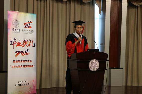 On June 22, 2016, IIIS Commencement Ceremony and YaoClass Meeting took place at the Lecture Hall of FIT Building. Prof. Andrew Chi-Chih Yao, Dean of IIIS, Dr. Zou Hao, chair professor of Tsinghua University, and Su Peng, Vice Dean of Academic Affairs Office, were invited to attend the ceremony, together with IIIS faculty, graduates of 2016 and their parents and friends. Prof. Xu Wei, tutor of YaoClass 2012, hosted the ceremony.
