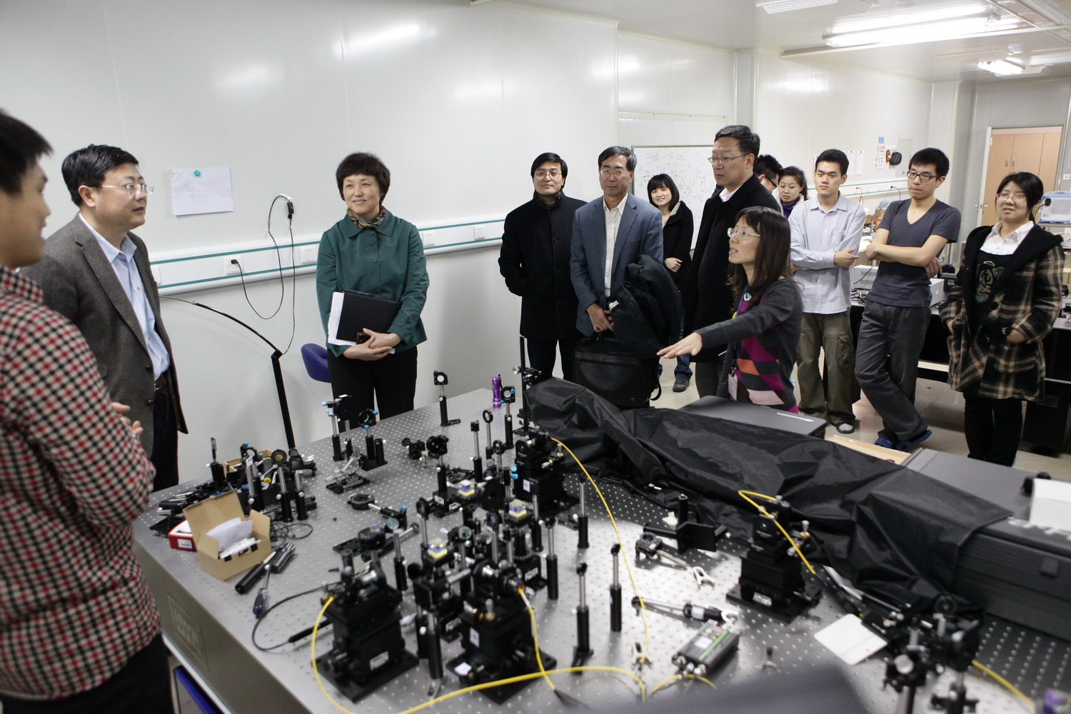 President Chen (2nd L) and Vice Secretary Chen (3rd L) visit CQI lab.