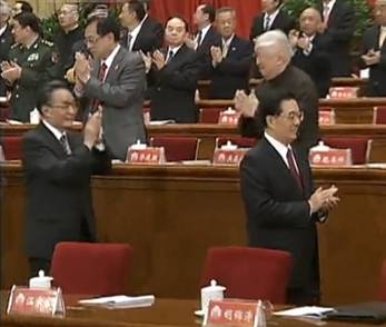 Chinese President Hu Jintao shakes hand with Prof. Yao before the Ceremony.