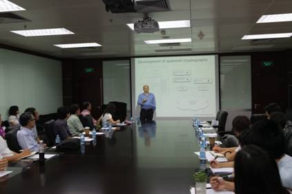 Following the meeting, the delegation team visited CQI lab and was impressed by its progress. CQT Director Prof. Artur Ekert gave a talk entitled “Less Reality,More Security” at IIIS Institute Seminar in the afternoon.