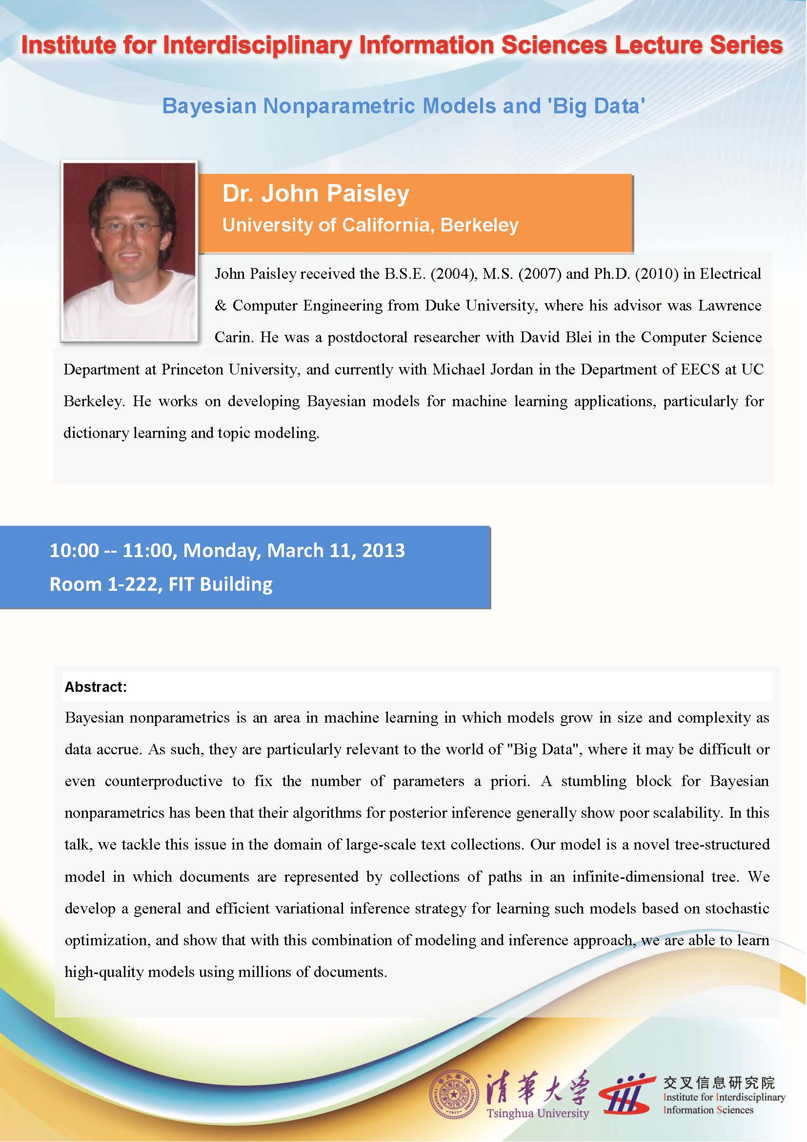演讲人 John Paisley University of California, Berkeley 时间 2013-03-11 10:00-2013-03-11 11:00