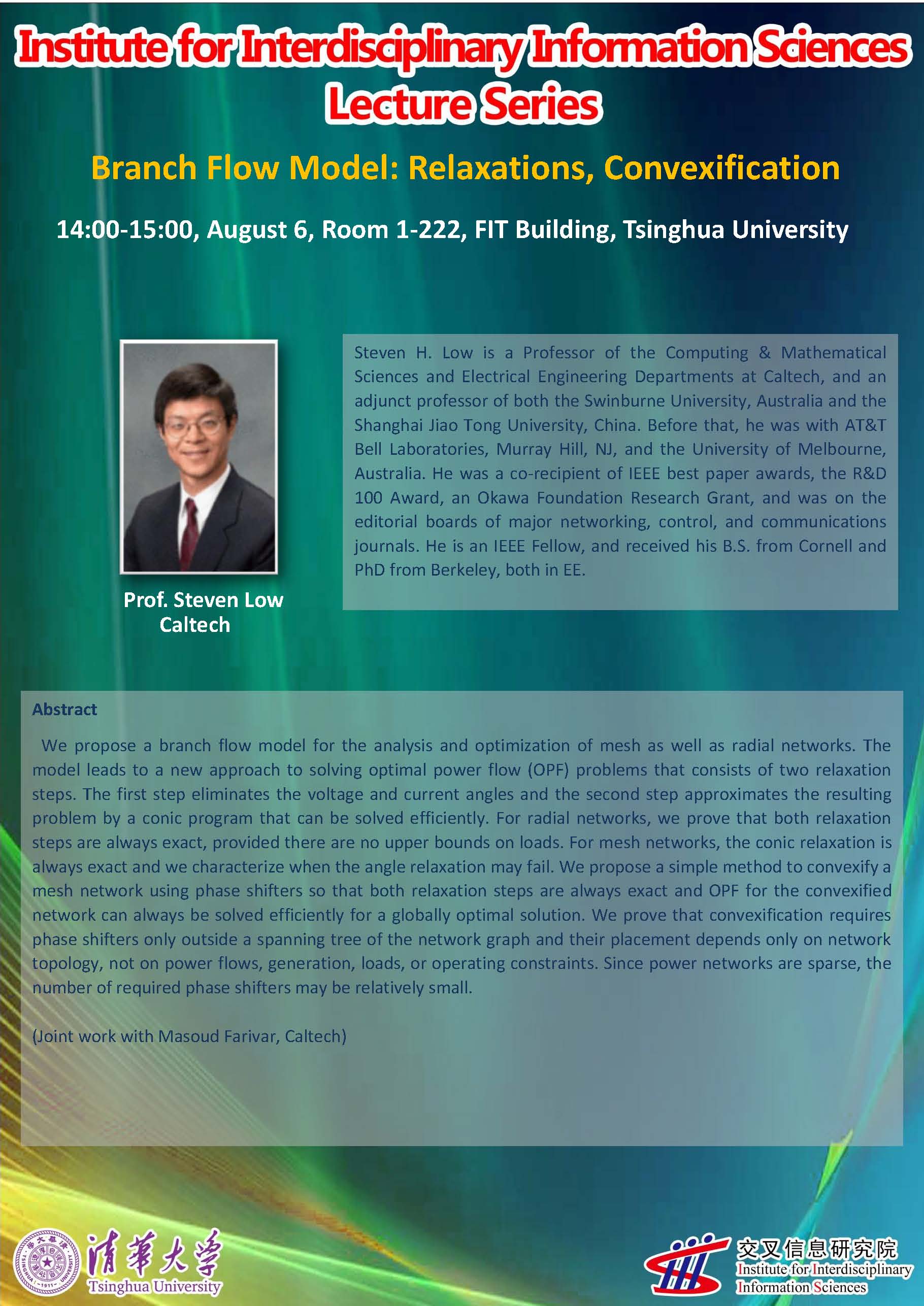 Speaker: Steven Low Caltech