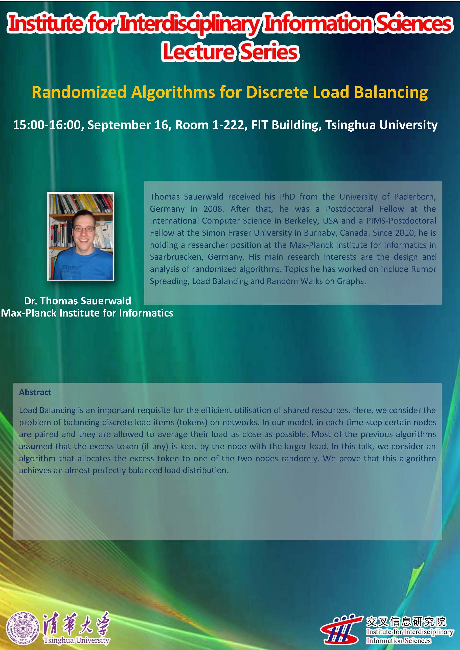 Speaker: Thomas Sauerwald Max-Planck Institut for Informatics, Germany