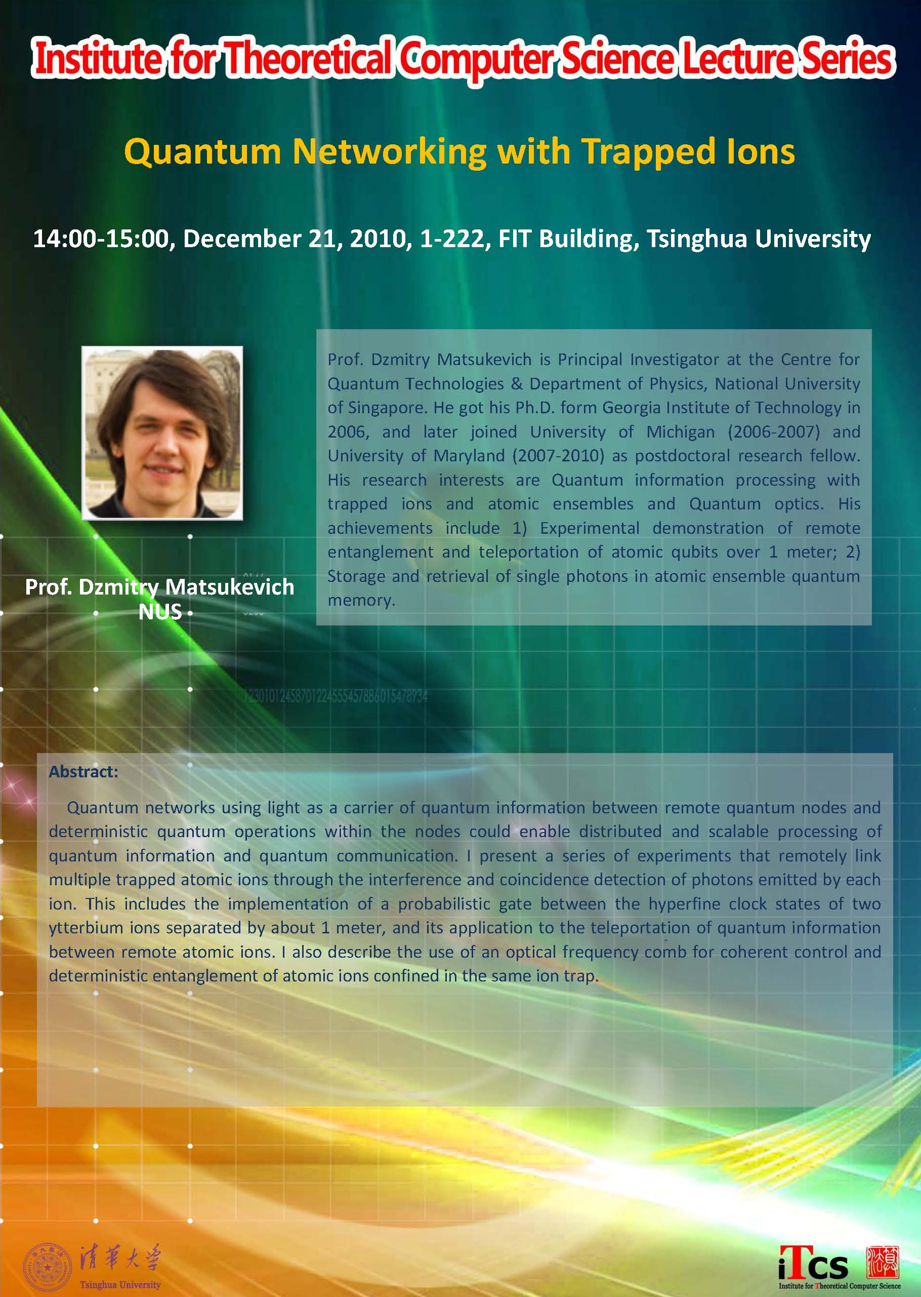 演讲人 <a href='//www.quantumlah.org/people/Dzmitry' target='_blank'>Dzmitry Matsukevich</a> National University of Singapore 时间 2010-12-21 14:00-2010-12-21 15:00