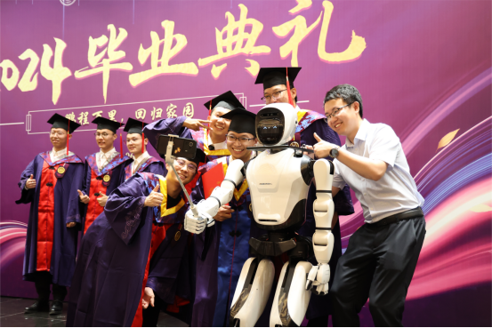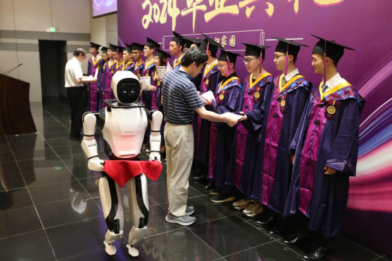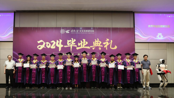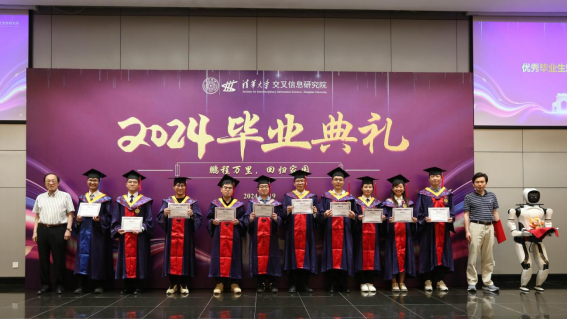 典礼上,姚期智院长和段路明院士共同为2024届优秀毕业生颁发奖状。本次颁奖环节,陈建宇老师研究组科研成果“机器人小星”上台协助颁奖,令全场气氛再次达到高潮。