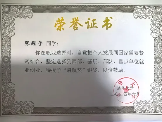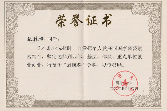 2024届博士生张林峰、张耀予同学分别荣获清华大学毕业生“启航奖”金奖、银奖。自2006年设立以来,“启航奖”旨在表彰“到党和人民需要的地方发光发热”的优秀毕业生,积极鼓励和引导优秀毕业生前往国家重点地区、行业和领域就业创业。