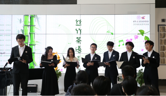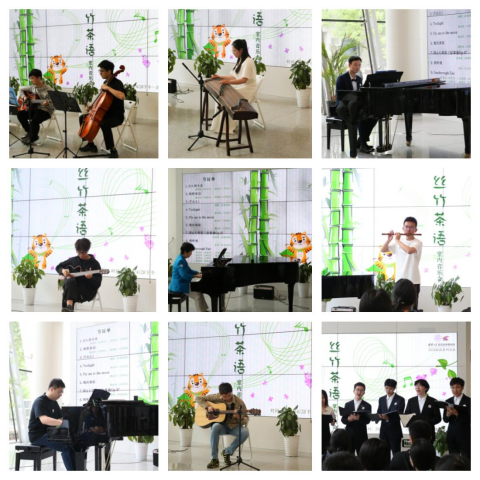 4月28日,“丝竹茶语”室内音乐会在FIT楼大厅举办。师生们带来钢琴曲《D大调卡农》、钢琴古筝协奏曲《枫桥夜泊》、钢琴曲《Twilight》、吉他曲《Fly Me to the Moon》、竹笛曲目《牧民新歌》、钢琴曲《降A大调第三叙事曲Op.47》、吉他曲《枫叶城》、合唱《Scarborough Fair》。储枫教授更是为大家带来精彩的肖邦钢琴独奏曲。音符跃动,为校庆院庆活动画上圆满句号;弦歌不辍,为扬帆起航鼓起风帆。