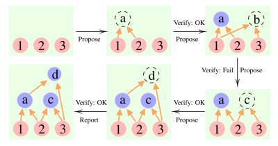 图1:累积推理框架用于解决含三个前提的问题