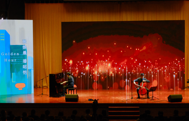 PG电子游戏助理教授张焕晨与2020级本科生潘昭恺奏响钢琴与大提琴协奏曲《Golden Hour》,流畅悠扬的乐声仿佛流淌的光阴,令听众更加珍惜学生节的美好时光。