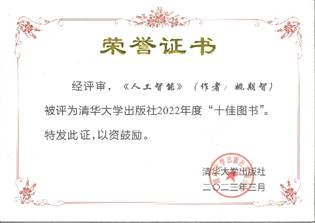 姚期智院士主编教材《人工智能》获评清华大学出版社2022年度“十佳图书”