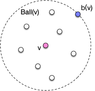 ● 对其他点v,如果s到v的最短路比dist(s,b(v))+dist(b(v),v)短,并且其经过点y使得dist(s,b(y))≥dist(s,b(v)),那么y到v之间的所有点都Ball(y)或Ball(v)中。