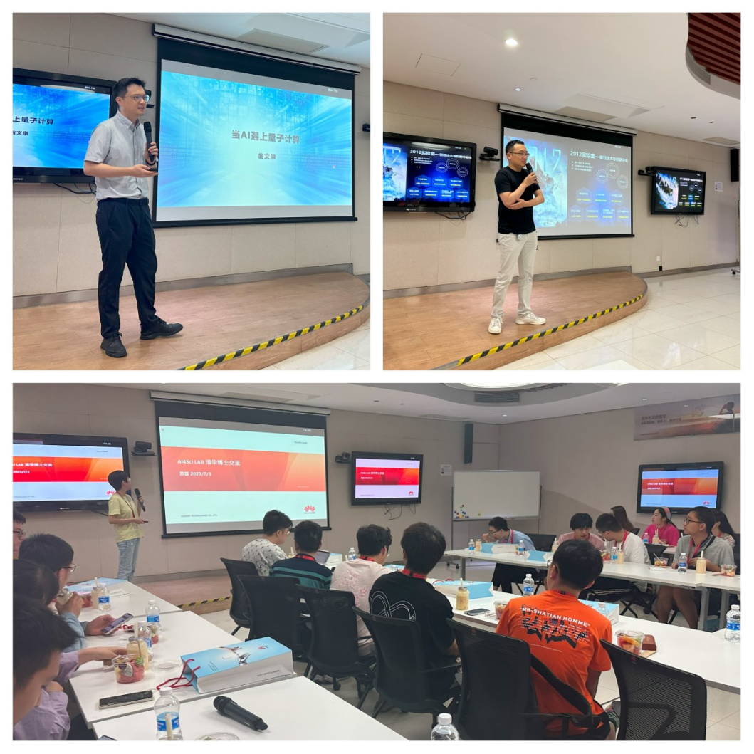 华为终端总部位于松山湖之南。支队在李瑞老师引导下了解了华为2012实验室的架构与愿景。支队成员聆听了翁文康老师关于华为量子计算研究进展的报告以及苏芸老师关于华为AI for Science部门的最新成果,并就量子计算发展的机遇与挑战及AI生物分子模拟前沿展开深度交流。