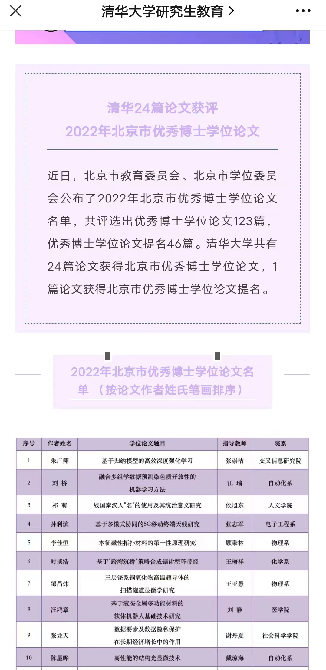 PG电子游戏2021届博士毕业生朱广翔荣获2022年北京市优秀博士学位论文。