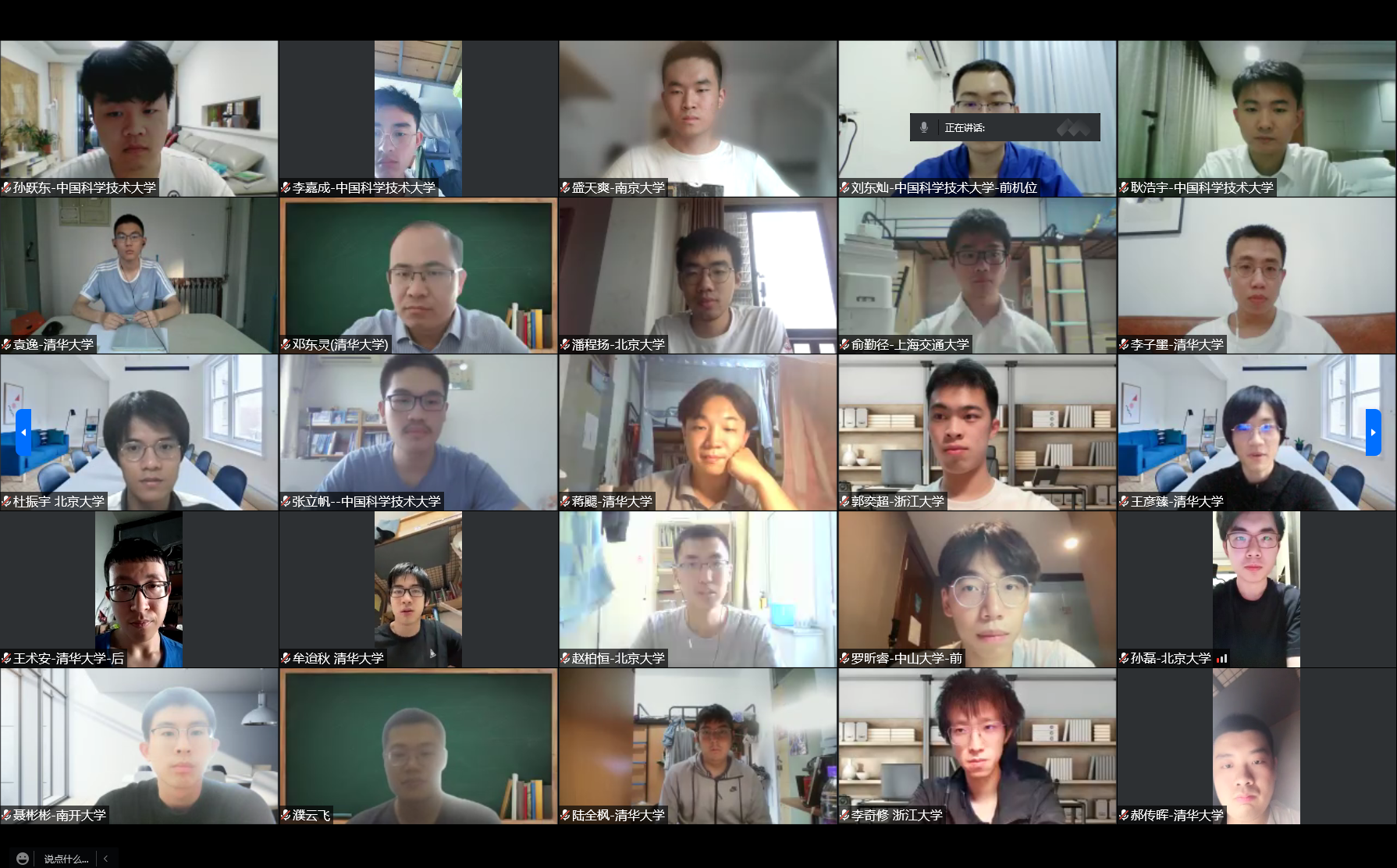 5月28日,物理学科夏令营线上正式开营。段路明教授致开营辞,并作关于量子信息科学前沿简介的报告。马雄峰、孙麓岩、邓东灵、濮云飞、吴宇恺、徐勇等6位教授聚焦量子信息科学、基于超导的量子计算实验研究、量子信息与计算、量子人工智能、原子量子中继和离子量子网路、拓扑凝聚态物理等主题,先后为营员们作学术报告。