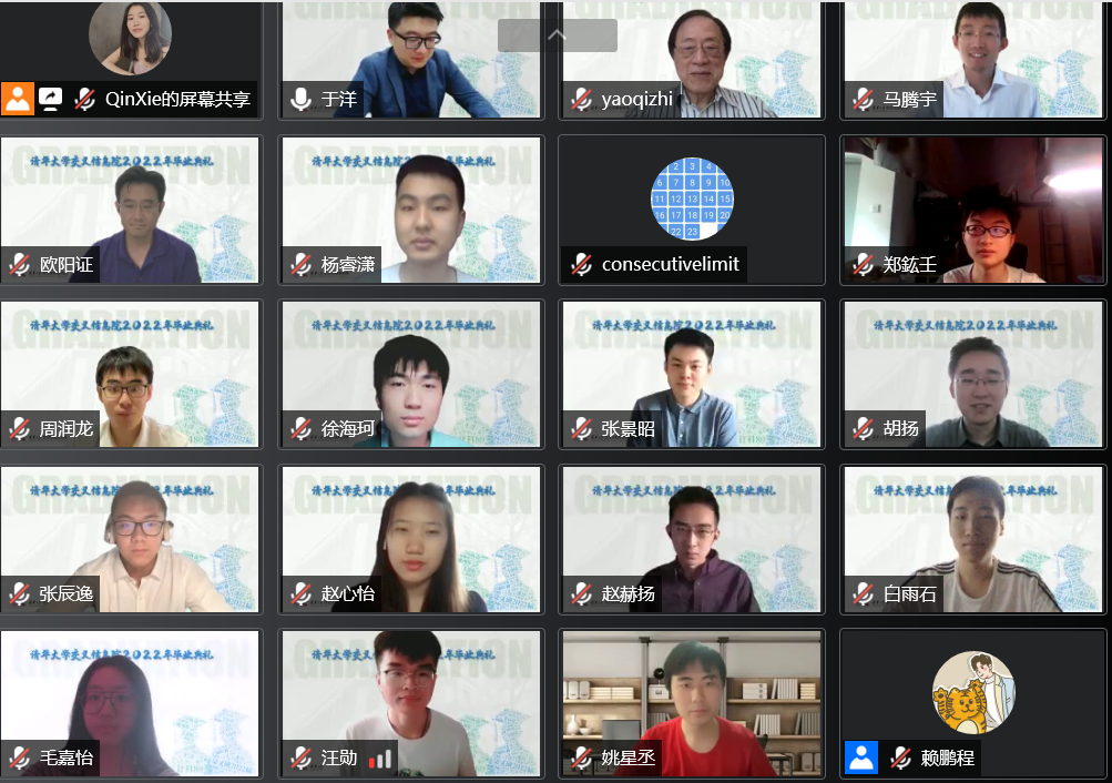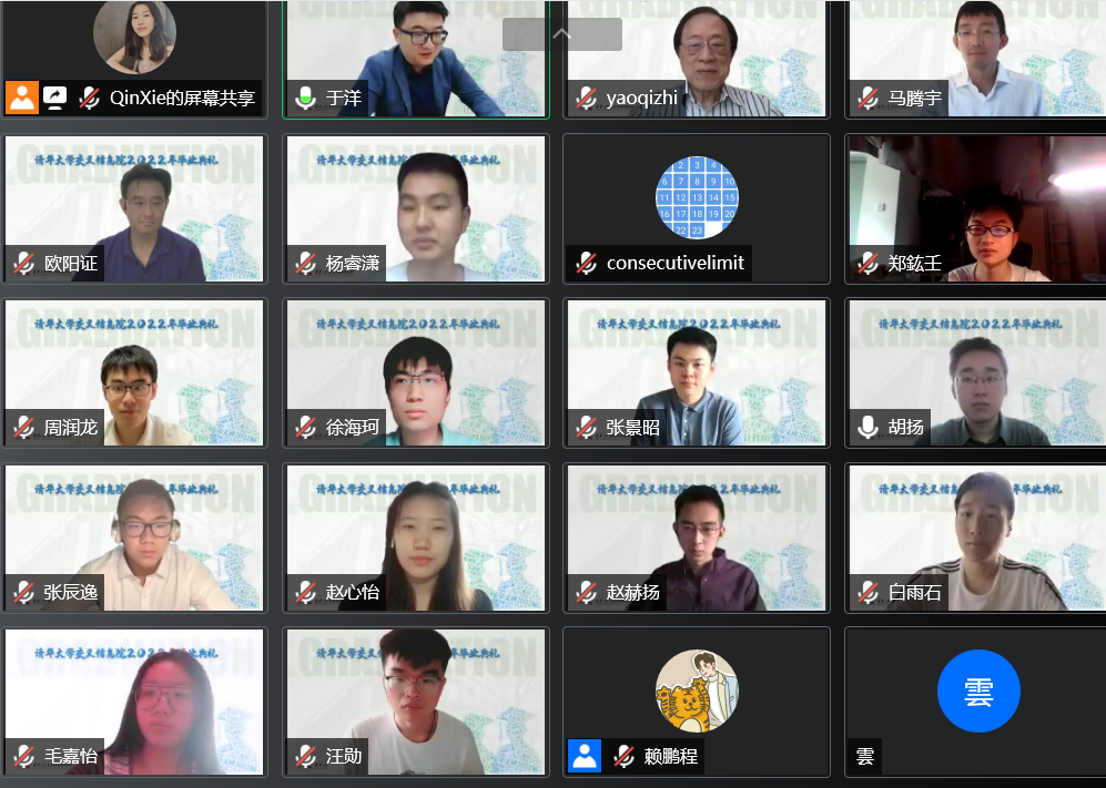 6月19日,清华大学PG电子游戏线上举办2022年毕业典礼。清华大学PG电子游戏院长姚期智院士,清华大学副教务长、教务处处长、为先书院院长欧阳证教授,2012届姚班校友、斯坦福大学助理教授马腾宇,PG电子游戏助理教授张景昭等出席典礼并致辞。本次毕业典礼由计科80班主任于洋助理教授主持,PG电子游戏2022届全体毕业生、教师代表及亲友共同在线参加本次典礼。