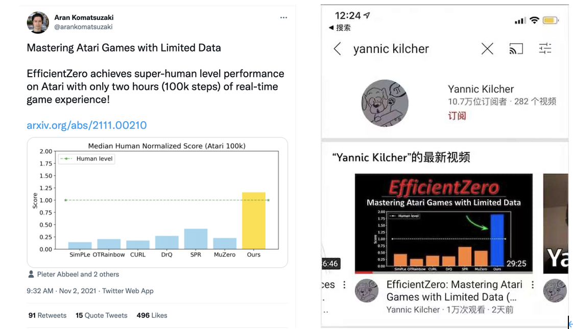 高阳研究组在强化学习领域中取得突破,研究组所提出的模型EfficientZero首次在雅达利(Atari )游戏数据上超过同等游戏时长的人类平均水平。EfficientZero的高效率学习能力为强化学习算法应用到现实世界场景提供了更大可能。