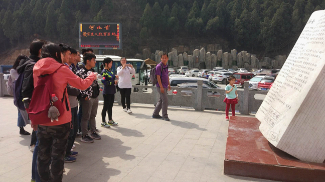 3月31日上午,同学们首先抵达位于河北省保定市易县的著名抗日根据地狼牙山。1941年9月25日,马宝玉、胡德林、胡福才、葛振林、宋学义五名战士为掩护主力部队转移,被敌人逼到狼牙山顶峰,毅然跳下了悬崖,成就一段壮烈的抗日佳话。支部一行在险峻的山峰下瞻仰五位壮士屹立的铜像,肃然起敬,被狼牙山壮士“牺牲自己、保全组织”的无私奉献精神所感动震撼,让我们不禁想到在这个和平的年代,更要努力学习,未来好好报答国家和党的养育之恩。