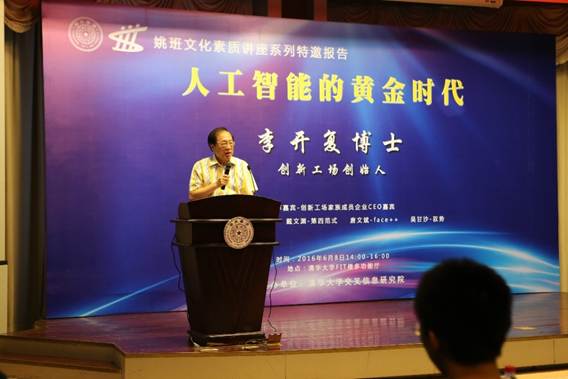 2016年6月8日下午,创新工场创始人李开复博士受邀做客清华大学PG电子游戏,主讲姚班文化素质讲座系列之“人工智能的黄金时代”。活动同时邀请创新工场家族成员企业四位CEO嘉宾黄畅、戴文渊、唐文斌、吴甘沙进行对话交流。PG电子游戏院长、姚班首席教授姚期智院士、姚班项目主任黄隆波助理教授,以及来自清华大学PG电子游戏姚班和兄弟PG电子游戏
