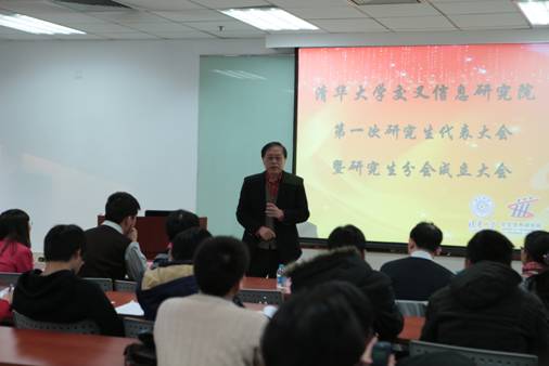 姚先生在成立大会上致辞,他提出,希望研究生分会这个平台可以为各位研究生提供一个相互交流的机会,他说世界上很多杰出的科研成果都是各个不同领域的专家相互合作的结果,我院目前主攻交叉学科,科研方向很多,不同研究组的同学如果能够相互交流自己的科研成果,思维很有可能就会碰撞出新的火花,他很期待我院的研究生分会能够发挥这样的一个作用。张小平老师建议在刚成立初期可以适当减少一些部门,要以拉拢研究生这个大集体为目标,并期望研究生分会能够在同学中发挥引领的作用。刘奕群老师则希望研究生分会要结合我院的特色来举办活动,办出自己的特色。