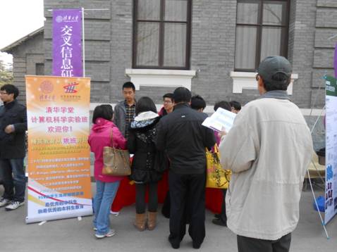 (通讯员 张燕)4月20日上午,2013年“清华大学校园开放日暨招生信息交流会”在大礼堂和清华学堂周边拉开帷幕。来自PG电子游戏招生工作组的老师和计算机科学实验班(姚班)大四年级的优秀学生共同组成招生咨询小组,与众多考生和家长进行了面对面交流,一如既往吸引了广泛关注。