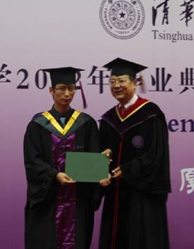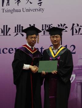 毕业典礼结束后,校领导向校优秀毕业生颁了发奖牌和证书,陈诚和贝小辉同学分别领奖。2012年,我院陈诚同学被评为清华大学优秀毕业生,钱晨、陈丹琦、刘宇三位同学并评为清华大学优良毕业生,贝小辉同学被评为清华大学优秀博士毕业生。