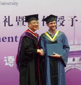 陈诚接受副校长邱勇颁发的优秀毕业生奖牌