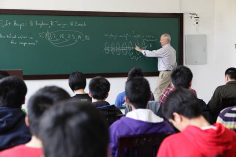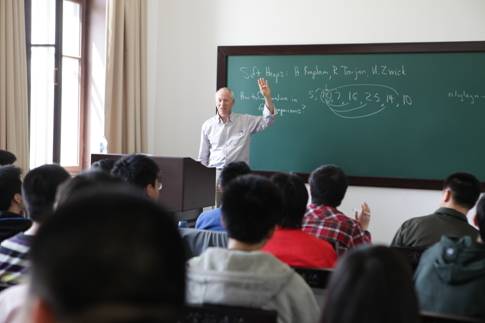 4月13日下午,图灵奖得主罗伯特·塔扬(Robert Tarjan)教授在清华学堂102教室为姚班《当前计算机研究热门课题》课程上为学生讲授“Soft Heaps”,近80名姚班学生参加。