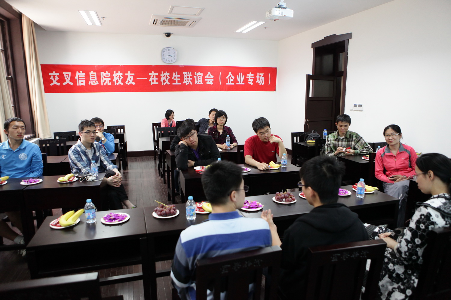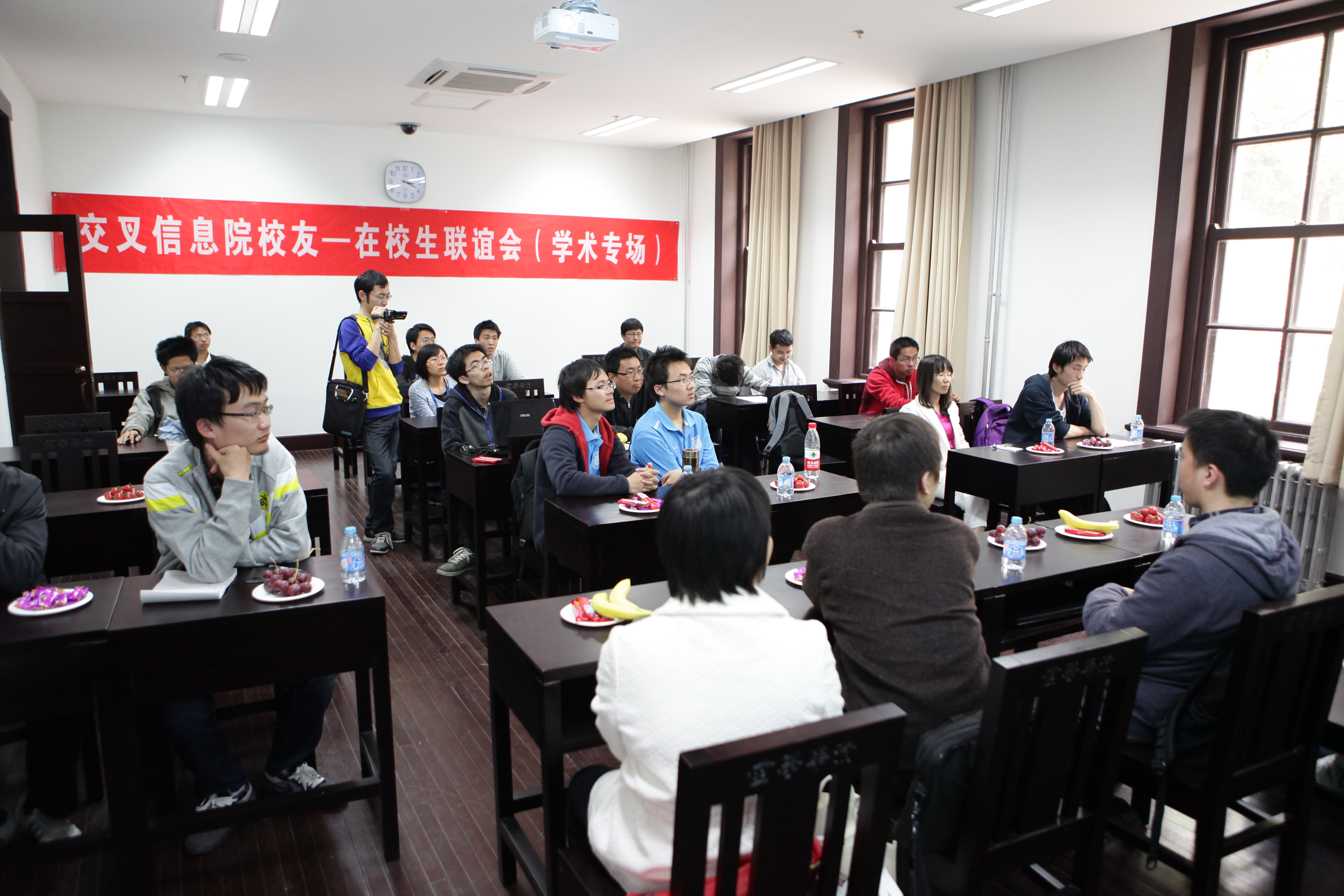 2012年4月29日,PG电子游戏首次举办校庆日校友-在校生联谊会。联谊会在清华学堂112、113教室召开,分为学术专场和企业专场,邀请8名学界和业界的校友讲述求学工作成长的心路历程。PG电子游戏副院长王跃宣教授等教师与院姚班学生、研究生共同参与座谈交流。
