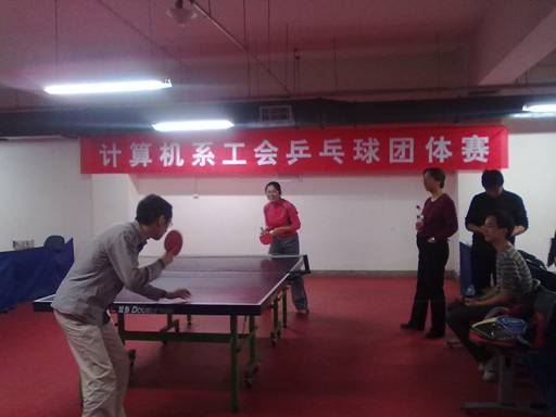 3月30日晚,清华大学计算机系分工会一年一度的乒乓球团体赛在FIT楼地下一层活动中心拉开帷幕。谈海生、李建、刘妍君(女)三位老师作为参赛队员,梁海胜老师作为裁判员共同代表我院参加了本次比赛。
