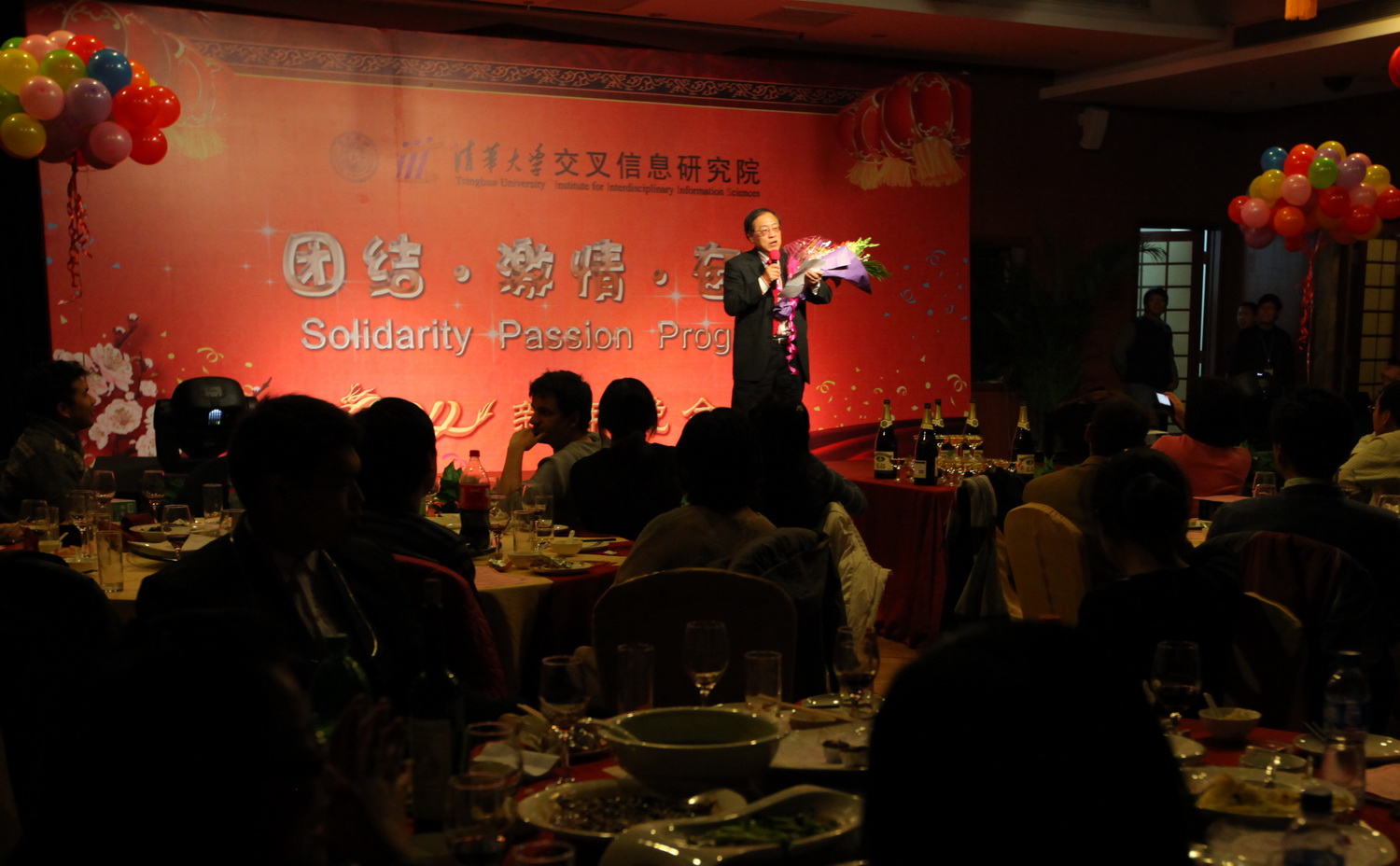 一曲惊艳的暖场印度舞蹈,正式拉开了晚会演出的序幕。师生组合的六人主持团队亮相舞台,为全场带来温暖的新春祝福,也引出了一台精彩纷呈的演出。今年晚会演出最大的特色在于所有演员无一例外都是IIIS成员,包括本科生、研究生和教师,充分展示了全院师生多才多艺的舞台风采。姚先生的惊喜表演,王老师的倾情演唱,以及幸运抽奖、开心游戏,逐一引爆了晚会的每一次高潮。在掌声与欢笑声中,IIIS告别2011年,迈向2012年。2011对IIIS而言,是喜悦的一年,收获的一年,荣耀的一年,团结的一年,奋斗的一年;而即将到来的2012年对IIIS而言,则意味着开启更为不平凡的一年。感谢李响老师的杰作,让我们一起在镜头里铭记IIIS一家人永远的激情与梦想!