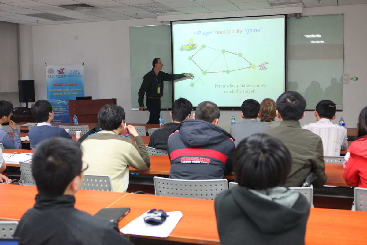 2011年10月31日上午,由清华大学PG电子游戏和清华-奥胡斯交互计算理论中心联合举办的Mini-course on Algorithmic Aspects of Stochastic Games and Related Models在清华大学信息技术大楼1-312会议室开讲。