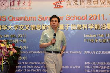 和清华-密西根量子信息联合中心共同主办。随着973导向项目“全量子网络”的顺利运行以及量子信息中心实验室的改造建成和投入使用,清华大学量子信息中心正积极开展相关工作,致力于培养高素质、高水平的量子信息人才,为我国高层次的量子信息科学研究贡献力量。据姚期智院士介绍,量子信息前沿研究渗透物理学、信息科学、电子学、力学等许多学科,依照“全量子网络”项目规划,我国将在5年内创建世界上第一个新型的、具有自主知识产权的“全量子网络”雏形,并进一步开展全功能量子计算结点、超长相干时间的量子存储器、量子计算结点与量子光通讯通道间的量子界面研究,为下一个5年计划实现全量子存储网络以及未来实现长程全量子网络作前瞻性部署。