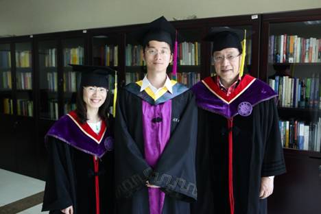 “姚班”首席教授姚期智院士、项目主任王跃宣教授与“姚班”优秀毕业生张远合影