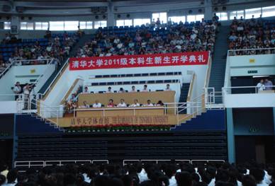 8月18日上午,清华大学2011级本科生新生开学典礼在综合体育馆隆重举行。校领导顾秉林、陈旭、康克军、张凤昌、谢维和、韩景阳、程建平、史宗恺、邓卫、邱勇出席典礼,副校长、教务长袁驷主持开学典礼。清华学堂计算机科学实验班(“姚班”)2011级新生在PG电子游戏副院长、“姚班”项目主任王跃宣教授的亲自带领下参加了开学典礼。