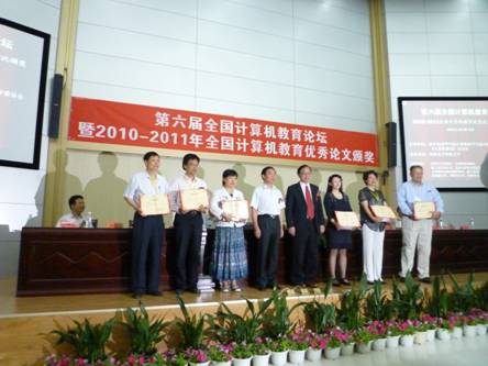 在此次论坛上,姚先生还为2010-2011年全国计算机教育优秀论文获奖者颁奖并合影留念。