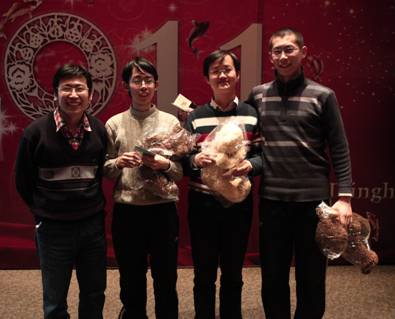 依旧是火红鲜艳的背板,时间已跨过一整个年度。姚期智教授和王跃宣教授在晚会上致辞,点评过去一年ITCS的快速发展,也展望2011即将开启的美好新篇章,特别提及当天下午正式启动的973重大导向项目“全量子网络”,以及即将成立的PG电子游戏