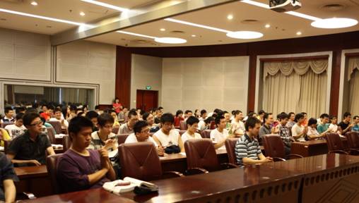 6月10日下午4点,清华大学计算机科学实验班(姚班)的大班会在FIT楼多功能厅召开,姚班四个年级共计百余学生参加。理论计算机科学研究中心主任姚期智先生、副主任王跃宣教授、孙晓明副研究员、胡美枝助理研究员、姚班工作助理张燕老师以及姚班辅导员韩文弢、王鹏都参与了本次班会活动。班会活动由王跃宣老师主持。
