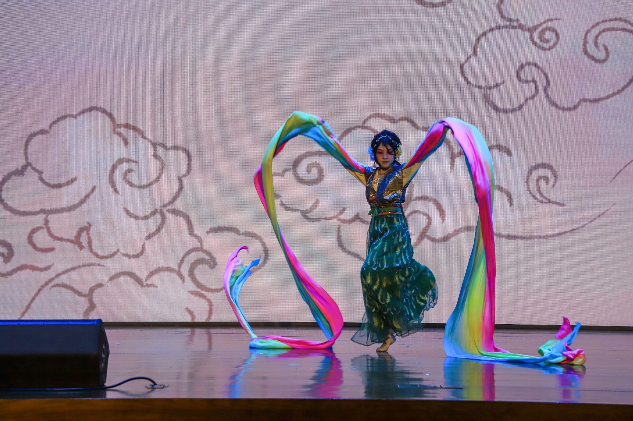2024级博士生、国际生陈仙颖带来的京剧《天女散花》是梅兰芳先生创编的经典,取材自《维摩经·观众生品》。该剧以载歌载舞的诗意形式,开创了“歌舞合一”的表演典范,尽显东方唯美意境。