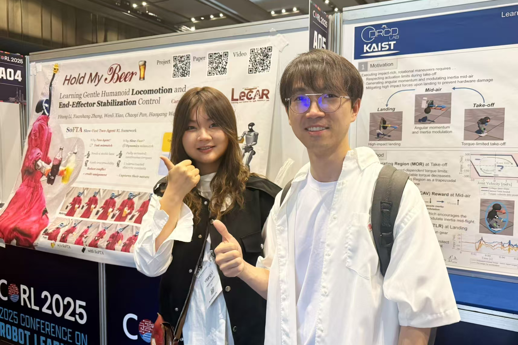 当时,人形机器人虽然能跳舞、踢球,但缺乏处理精细任务的协调能力,比如端稳一杯水。为解决这一难题,她提出了一种增强机器人稳定性的控制方法,使其哪怕在受到强外界干扰时,仍能展现出超人类的稳定性。作为第一作者,她这篇文章在机器人顶会CoRL 2025发表。德国国家科学院院士、瑞典皇家科学院外籍院士、德国马克斯·普朗克智能系统研究所所长Michael Black曾评论说:“这类工作才是真正能让人形机器人变得有用的研究。”