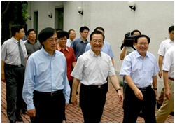 9月5日上午,在第20个教师节即将到来之际,中共中央政治局常委、国务院总理温家宝在国务委员陈至立的陪同下,来到清华园看望我校教授姚期智,认真听取了姚期智教授有关办好高等教育、发展国家信息科学的意见和建议。