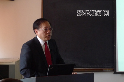 图为姚期智介绍清华大学计算机科学实验班情况。